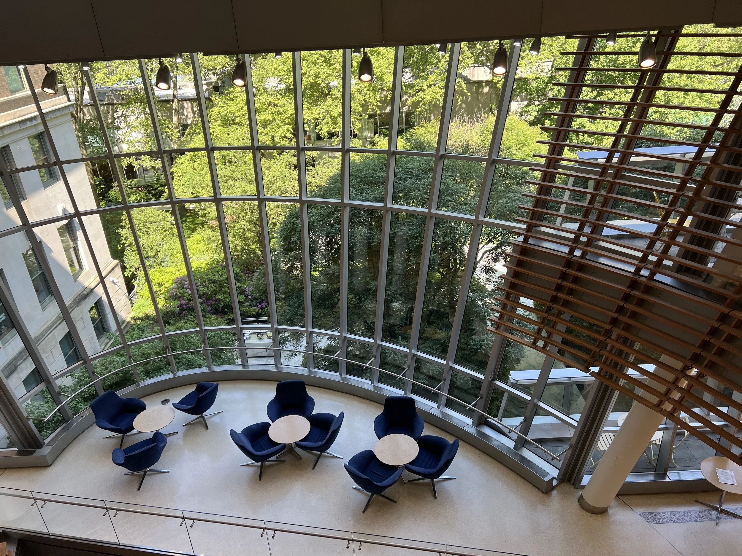 The Collaborative Research Center, a project envisioned by Rockefeller University to encourage interdisciplinary research and intellectual exchange, was designed by Mitchell Giurgola Architects, with the support of Melida Marte, Principal at M Marte Studio. The project involved renovating two existing laboratory buildings, each spanning 100,000 square feet, and adding a new 60,000 square foot connector building. This connector bridges the two structures and significantly enhances the landscaped areas in the northern half of the campus. The transformation has revitalized the north half of the campus, restoring it to its intended purpose as a vibrant hub for scientific research.